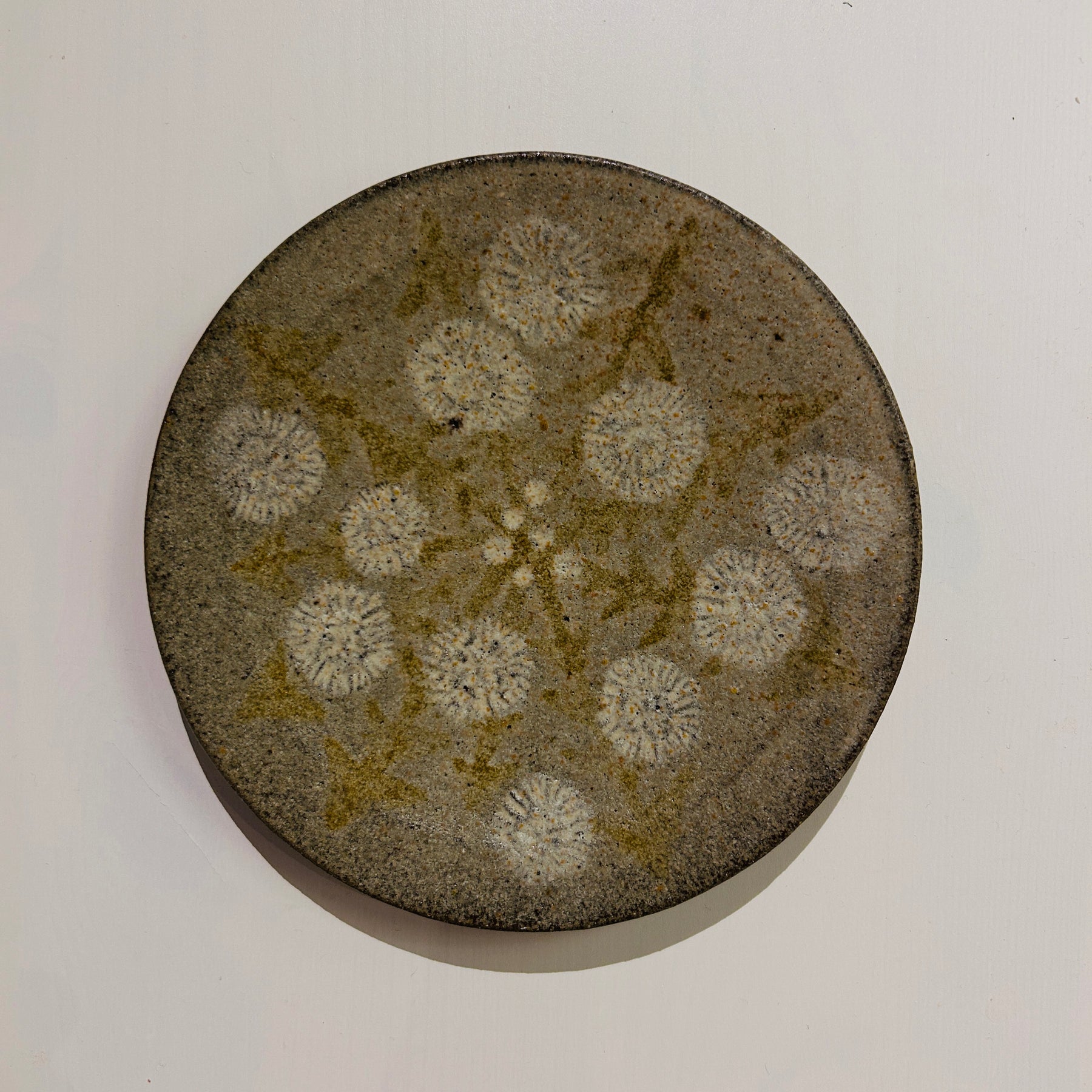 手島に咲く花々や植物を器に表現した作品。自然でいて、さりげないかわいさがあります。取り皿やケーキ皿としてぴったりくるサイズ感です。