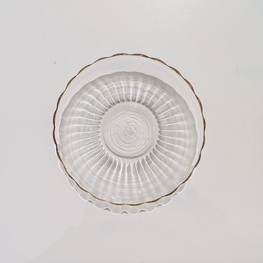 茶色い線がアクセントに描かれた丸平皿 二本線