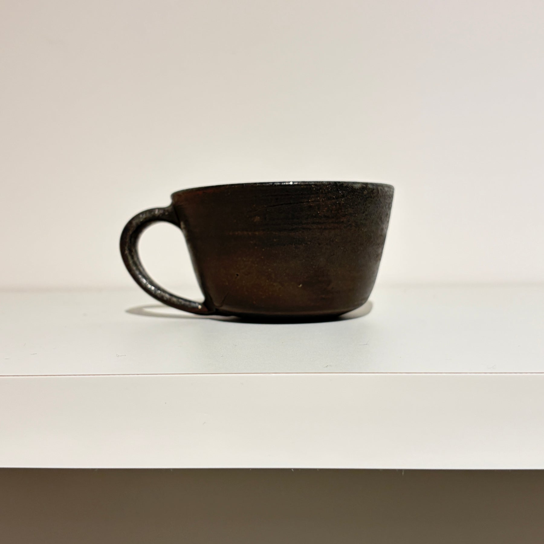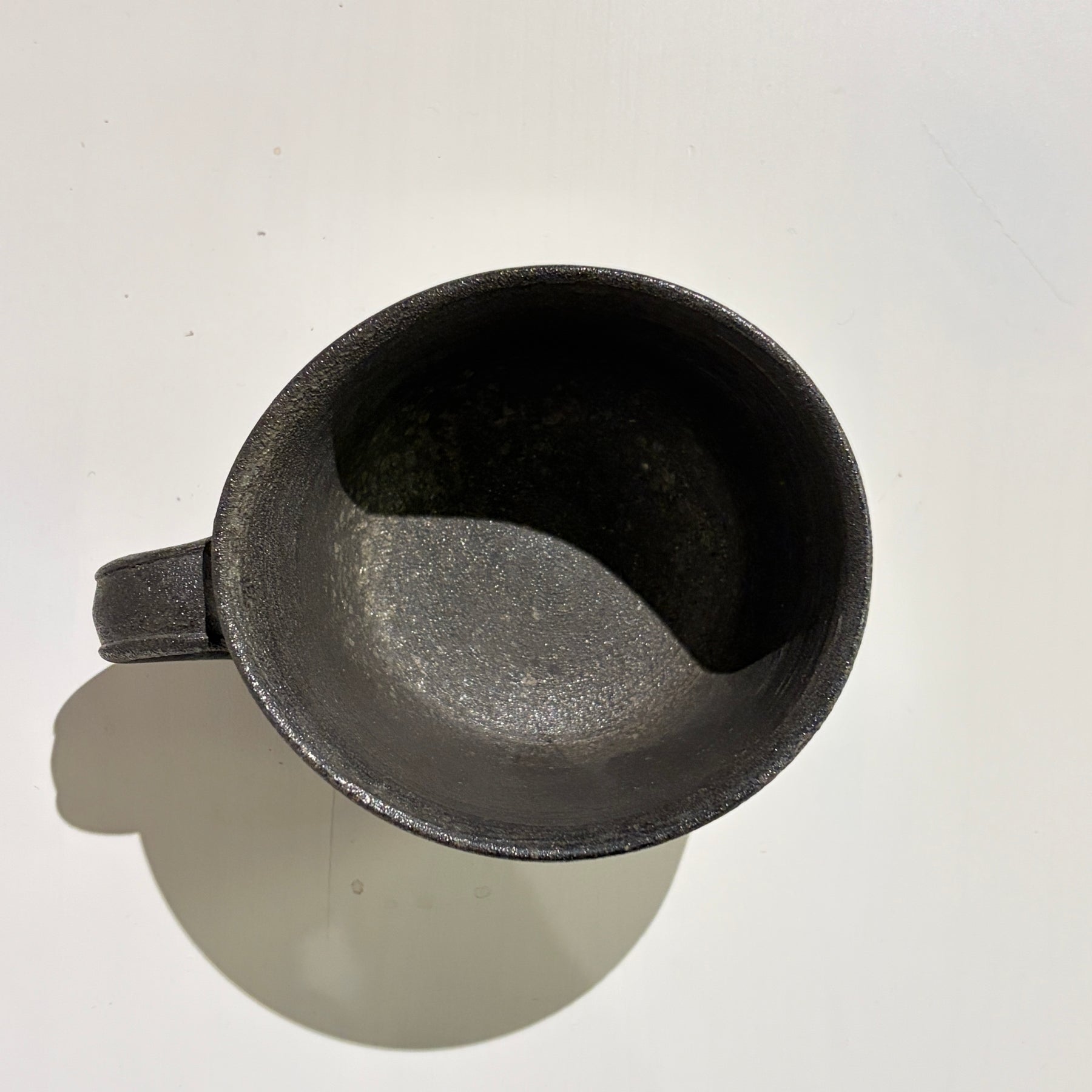 釉薬を使用せず、高温で焼き上げられたカップは、黒色の中にほんのりオレンジ色や赤色などの鉄分が出て、