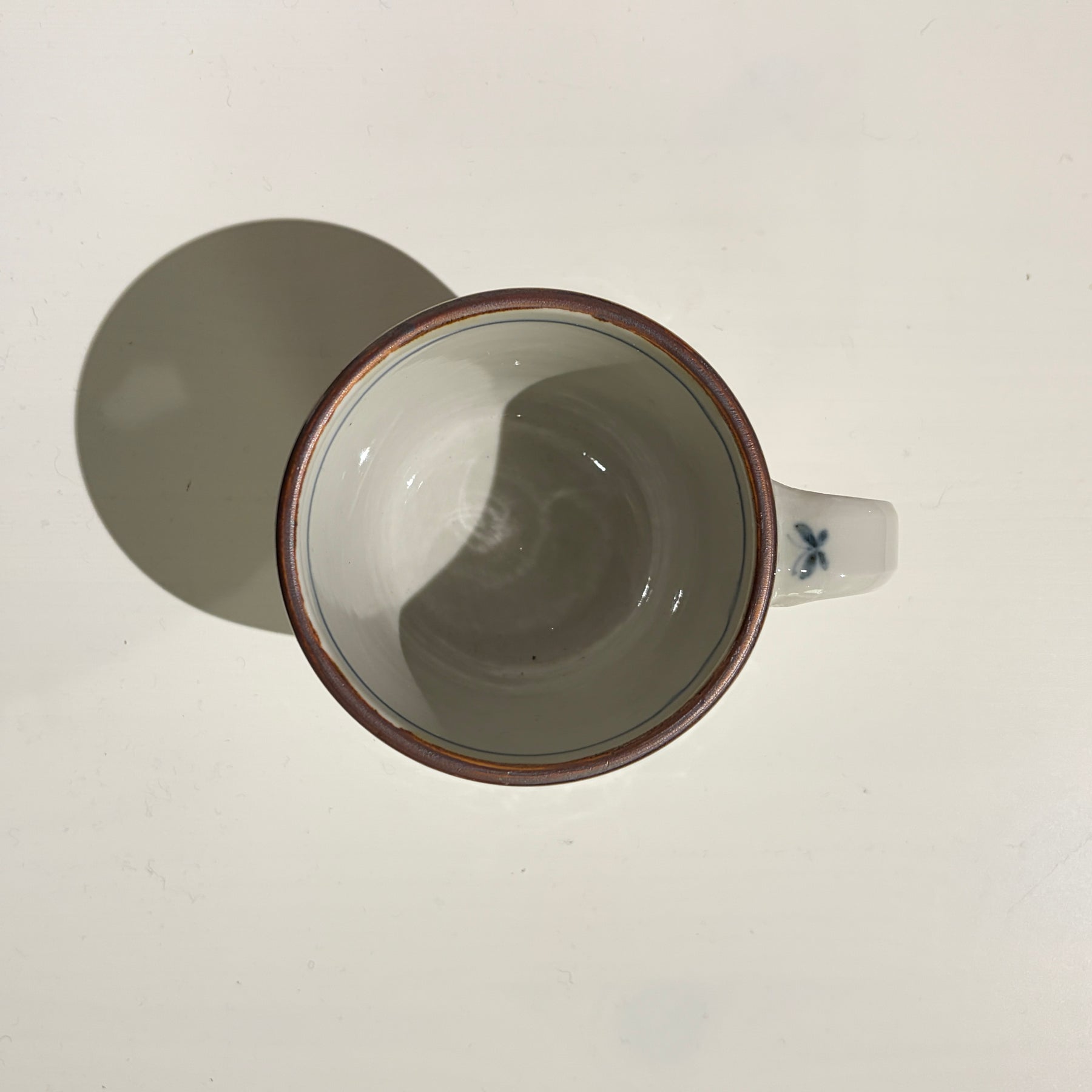 鉄を流した茶色の縁が、器の印象をぐっと引き締めつつ、淡い染付の模様と美しくマッチ。