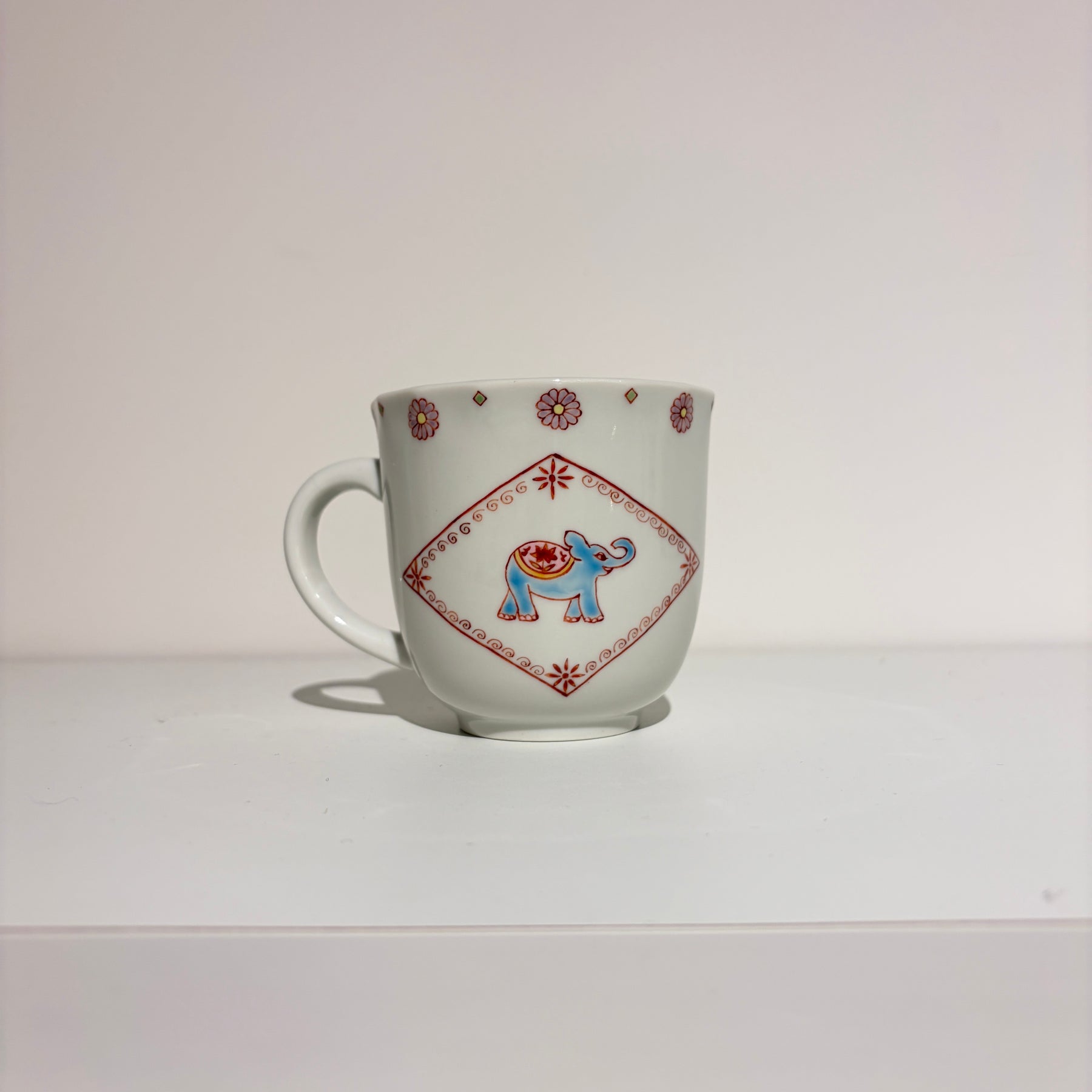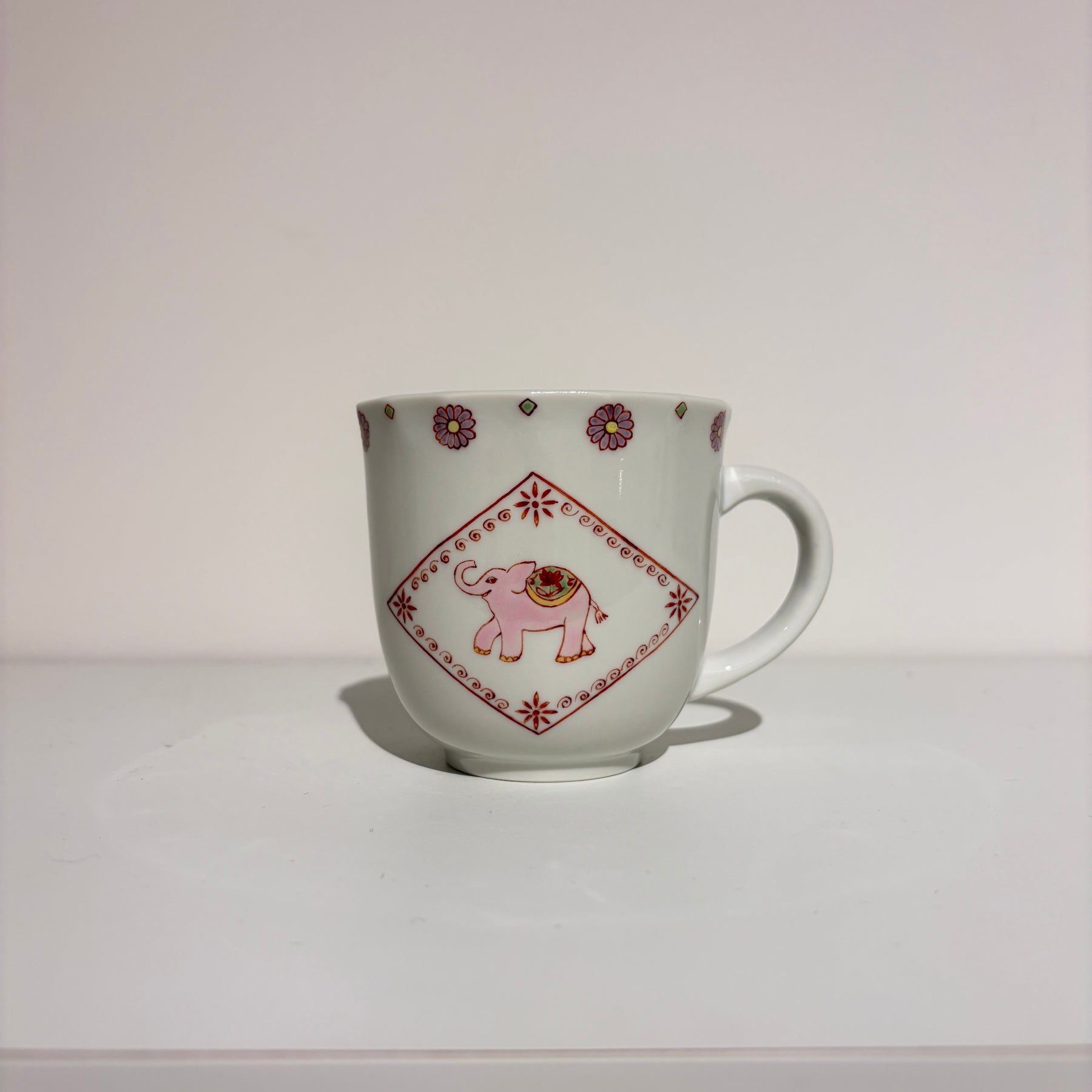 インド風のかわいらしい象さんが描かれた遊び心いっぱいのマグです。